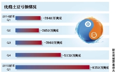 財報顯示,優(yōu)酷土豆Q1凈收入1.838億美元,同比增長47%,凈虧損為8350萬美元,是去年同期3倍。2014財年同期虧損為2840萬美元。